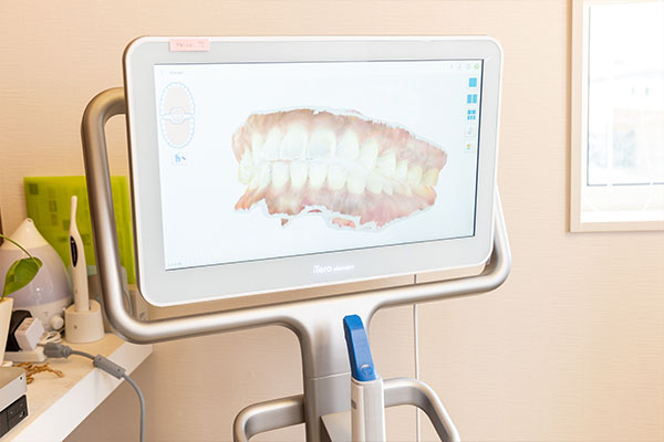 クリンチェックとは、iTero(アイテロ)と呼ばれる3D光学スキャナーでほとんど負担なく歯並びのデータを収集した後、そのデータを使って歯並びがどのように動いていくのか、そして最終的にどんな歯並びに仕上がるのかをモニター上で確認できるシステムです。