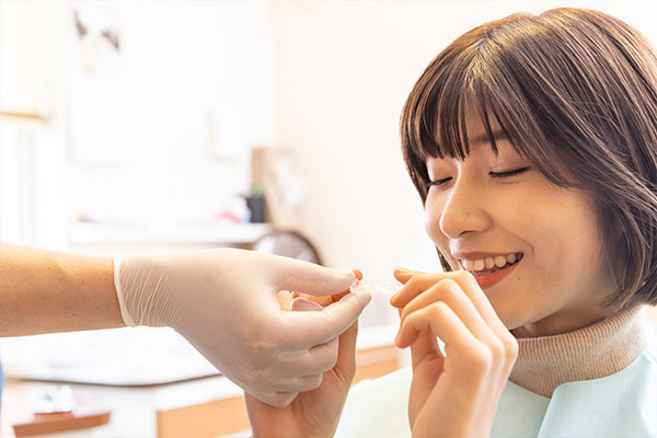 矯正治療中、1~2カ月ぐらいで定期的にご来院いただき、お口の中や装置の適合状態などを確認します。その時に、次回のマウスピースをお渡しします。